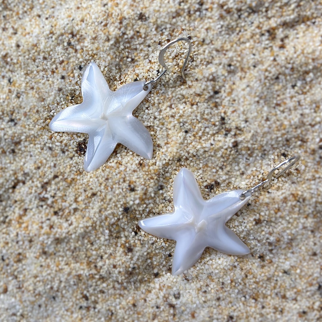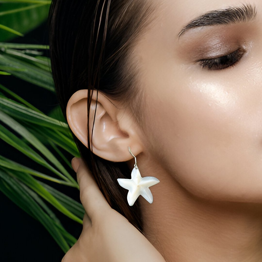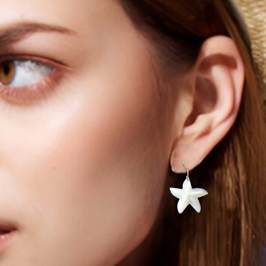 Embrace the beauty of the sea with these exquisite starfish-inspired earrings, delicately crafted to reflect the natural charm of ocean treasures. Made from luminous, shell-like material, these earrings radiate a soft, pearlescent glow, capturing the essence of beachside serenity. The lightweight design ensures effortless wear, making them perfect for both casual summer outings and elegant coastal-inspired looks. Let these earrings be your statement of grace, adventure, and love for the ocean.
