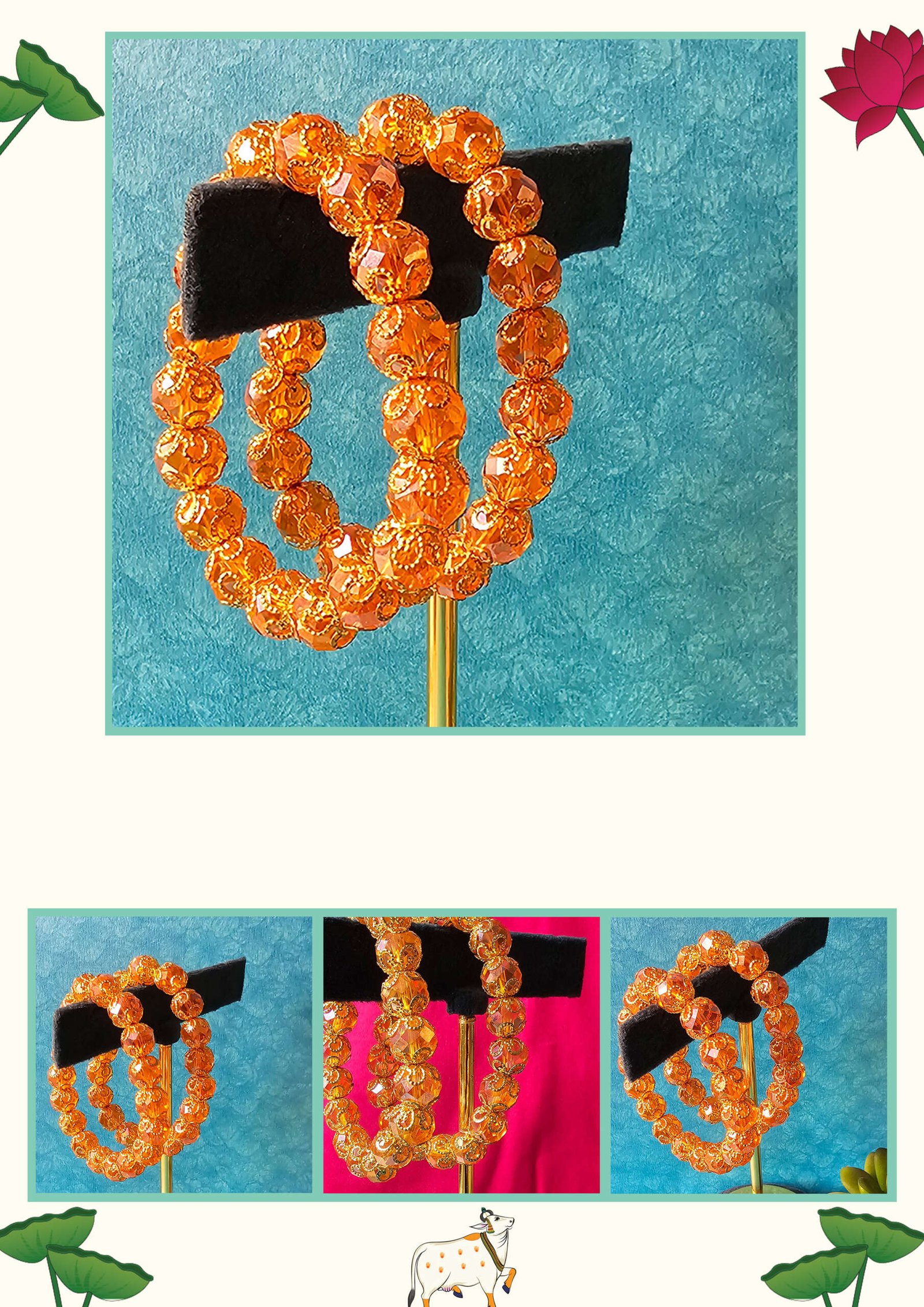 Bright orange beaded bracelet is crafted to stand out with its shimmering beauty. Each bead features intricate detailing and a faceted surface that reflects light, giving the bracelet a sparkling, jewel-like appearance. The warm orange color brings a cheerful and lively vibe, making it perfect for festive occasions, traditional outfits or simply uplifting your everyday look. Lightweight and flexible, it offers both comfort and charm in a single accessory. Whether worn solo or stacked with other bangles, this bracelet is a celebration of color, craft and joyful expression.